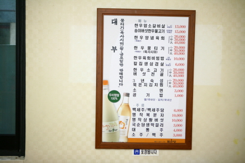 대부 식당의 주 메뉴는 육회 비빔밥과 육회 그리고 김치찜이다.