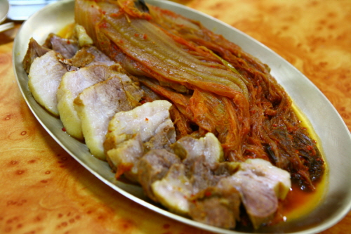 오래 숙성된 김치의 신맛이 돼지고기의 맛과 아주 잘 어울린다.
