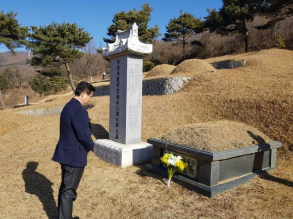 포항 호미곶에서 동해 일출 보며 포부 다짐... 새해 첫날부터 광폭행보 경주 안강지구전승비, 영천 호국원 참배 후 이의근 지사 묘소 찾아