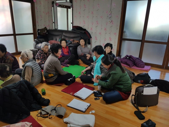 지진 피해이후 심리적, 정신적으로 피해를 입은 주민을 비롯한 허약노인 및 고위험 만성질환자들 가정을 방문 간호사가 직접 방문해 건강을 체크하고 있다. 또, 겨울철 동상방지, 뇌졸중 예방에 대한 유의사항 등 보건교육을 실시하고 추운 겨울을 따뜻하게 보내는데 작은 힘이나마 보태고자 무릎담요 및 수면양말을 제공했다.