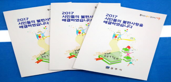 경주시는 지난달 26일 시민소통과 생활불편처리 등 한 해 동안 열린 행정과 신뢰행정 구현을 담은 ‘2017 시민생활불편해결 사례집’ 200부를 발간해 각 읍면동 주민센터 등에 배부를 완료했다.