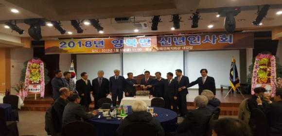 양북면(면장 손창수)에서는 양북면발전협의회(회장 이판보)의 주관으로 지난 5일 양북면복지회관에서, 희망찬 무술년의 새 출발과 면 발전을 기원하는 민관 합동 신년인사회를 가졌다.
