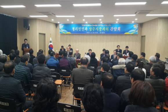 올해 첫 번째로 열린 이날 간담회에는 박원규 청리면 노인회장, 강영석 경상북도의회 교육위원회 위원장, 조준섭 상주시의회 산업건설위원회 위원장, 정재현 상주시의회 의원을 비롯한 관내 기관․단체장, 지역인사 등 약 80여명이 참석했다. 2018년 시정 추진방향 설명, 주민 건의사항 수렴 등 상주시와 청리면 발전 방안에 대해 격의 없는 대화의 시간을 가졌다.
