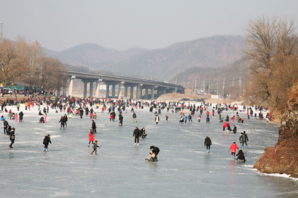 체험장 준비도 순조롭다. 암산교를 경계로 송어낚시와 빙어낚시터가 마련되고, 스케이팅과 썰매타기, 미니 컬링장, 민속놀이장도 꾸며진다. 암산교 부근에는 유로번지와 빙상자전거, 로봇바이크장도 마련된다.