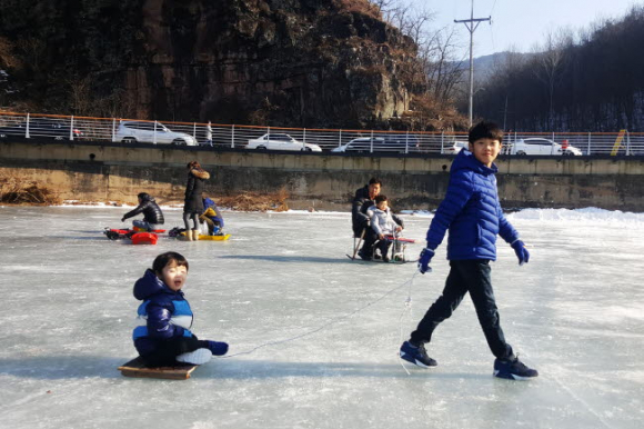 예년과 달리 이번 겨울은 강추위가 이어지면서 열흘정도 빨리 얼음이 얼었다. 이달 1일에는 암산스케이트장까지 개장하면서 방학을 맞아 천연빙질을 즐기기 위한 인파로 북적이고 있다. 스케이트 뿐 아니라 현장에서 다양한 모양의 썰매를 대여하기도 한다. 스노모빌에 오리모형을 달아 끄는 얼음기차도 동심을 자극하기에 충분하다.