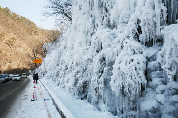 축제장도 분주하다. 암벽동굴과 암산교 사이 절벽에는 물을 뿌려 얼음빙벽 만들기 작업이 한창이다. 축제장으로 활용될 얼음판 위에는 미끄럼틀, 이글루, 양반탈, 전탑, 사슴마차, 백조의 호수 등 얼음조각전을 준비하고 있다.