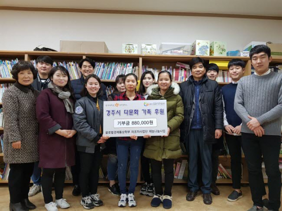 동국대학교 경주캠퍼스 참사람재능나눔센터는 지난 16일 경주 다문화가족지원센터를 방문하여 경주시 다문화가족들을 위한 기부금 88만원을 전달했다.