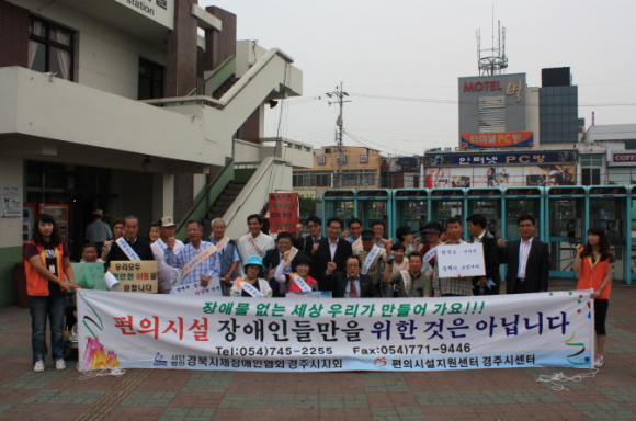|  | | | ⓒ GBN 경북방송 | | (사)경북지체장애인협회 경주시지회(지회장 이상인)에서는 ‘장애인, 노인, 임산부 등의 편의증진보장에 관한 법률’을 홍보하고 계몽하자는 의미에서 14일 장애인 편의시설 설치촉진 캠페인을 실시했다.