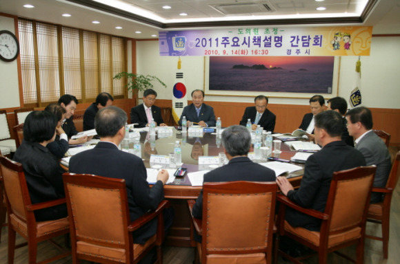 경주시는 14일 시청 대외협력실에서 2011년 도비 보조사업 예산 확보를 위하여 도의원 초청 설명 간담회를 개최했다.