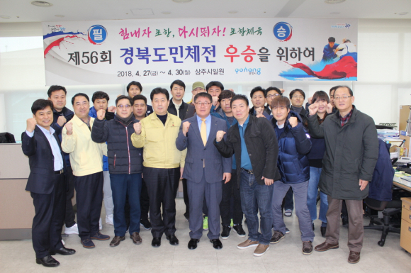 포항시와 포항시체육회(회장 이강덕)는 지난 18일 포항시청 새마을체육산업과에서 2018년 포항시체육의 발전과 결속을 다지고, 99일 앞으로 다가온 제56회 경북도민체육대회 종합우승을 위한 필승결의를 다짐했다.