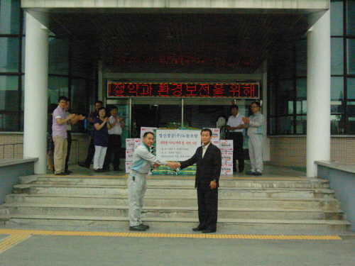 이에 최해중 천북면장은 영신정공(주) 노동조합과 대우주유소에 감사의 뜻을 전하고 앞으로 지역주민을 위해 지속적인 관심과 지원을 당부 하였다. |