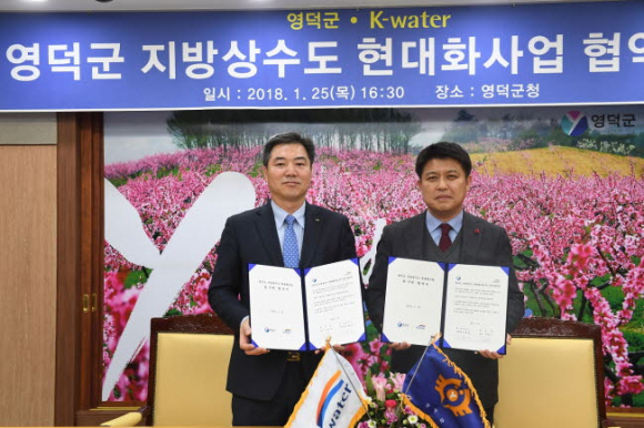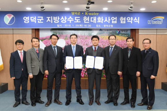 영덕군(군수 이희진)과 K-water(사장 이학수)가 지난 25일 군청 제1회의실에서 노후 상수도시설 개선을 위한‘영덕군 지방상수도 현대화사업 위·수탁 협약’을 체결했다