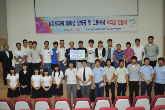 한국수력원자력(주) 월성원자력본부(본부장 정효선)는 17일 경주시 양남면 나아리에 소재하고 있는 신축 홍보관 강당에서 고교생 학자금과 대학생 장학금을 해당 학생들에게 전달하는 장학금 수여식을 가졌다.