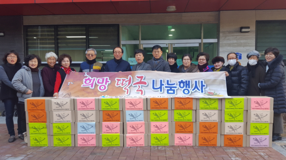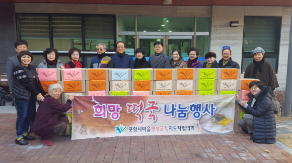 포항시 마을평생교육지도자협의회(회장 김용재)가 30일 포항시를 방문해 설맞이 이웃돕기 떡국 떡 1kg 포장 500세트를 희망복지지원단과 함께 관내 저소득층 300세대, 다문화가정 200세대에 전달했다.