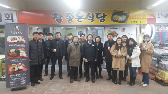 상주시 경제개발국장(국장 정성호)과 경제기업과 직원들이 지난 2월 1일 전통시장인 중앙시장을 찾아 점심 식사를 했다. 이들이 찾은 곳은 ‘참좋은 식당’이었다. 이곳은 전통시장 활성화를 위해 중앙시장 문화관광형 시장육성사업단에서 추진하는 핵점포 업체 중 하나다.