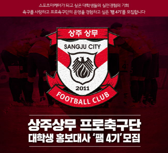 상주상무프로축구단(대표이사 백만흠)이 5일(월)부터 18일(일)까지 2018시즌 상주상무와 함께 나아갈 ‘팸 4기’를 모집하고 있다.
