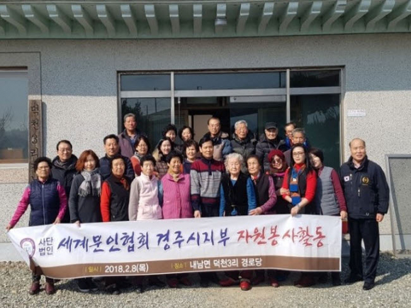 사단법인 세계문인협회 경주시지부(지부장 추대엽)에서는 8일 설 명절을 앞두고 문인회원들과 함께 내남면 경로당을 방문하여 자원봉사 활동을 실시했다.