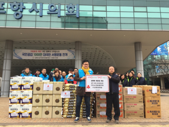 ㈜삼화피앤씨(회장 손경호)는 지난 10일 설을 앞두고 포항시 희망복지지원단을 방문해 10kg 백미 70포, 건어물 38세트, 라면 40박스, 생필품 43세트 등 730만원 상당의 후원품을 전달했다.