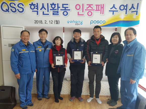 포항시와 포스코가 지난 12일 설머리 물회지구 3개 음식점 QSS 혁신활동 인증업소에 대한 인증패 수여를 했다.