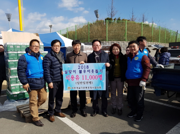 바르게살기운동포항시협의회(회장 황인식)가 민족 최대의 명절 설을 맞아 어려운 이웃들이 명절을 잘 보낼 수 있도록 2억4천여만원 상당의 식용유 20,000병을 전달했다.