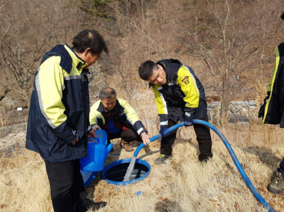 수비면 의용소방대(대장 : 금길환)는 최근 갑작스런 한파로 상수도가 동파되어 물 공급이 중단된 주민들의 급수지원에 발 벗고 나서고 있다.