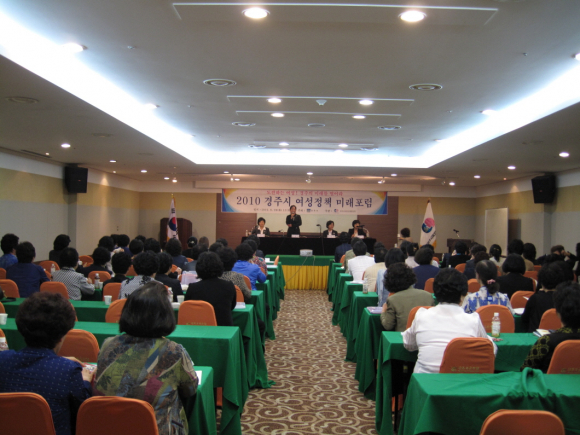 2010 경주시 여성정책 미래포럼」이 28일 올해 처음으로 “도전하는 여성! 경주의 미래를 열어라”라는 주제로 경주시가 주최하고 경주시여성단체협의회(회장 이영희)주관으로 보문코도모호텔에서 여성지도자 120여명이 참석한 가운데 성공적으로 개최되었다.