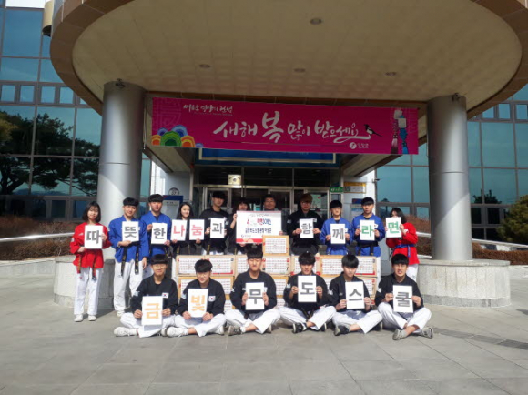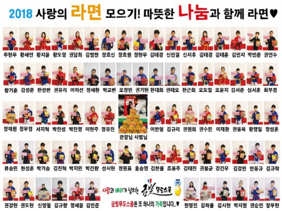 금빛무도스쿨(관장 이상준)은 지역의 어려운 이웃과 희망을 나누고자 2018년 2월 21일 영양군(군수 권영택)에 라면 22박스(100만원 상당)을 전달했다.